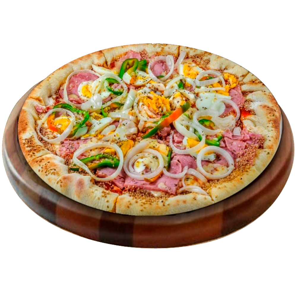 PIZZA AmericanoMolho, mussarela, presunto, bacon, calabresa, ovos, cebola e orégano(P) R$ 30,00 / (M) R$ 35,00 / (G) R$ 55,00 / (F) R$ 60,00